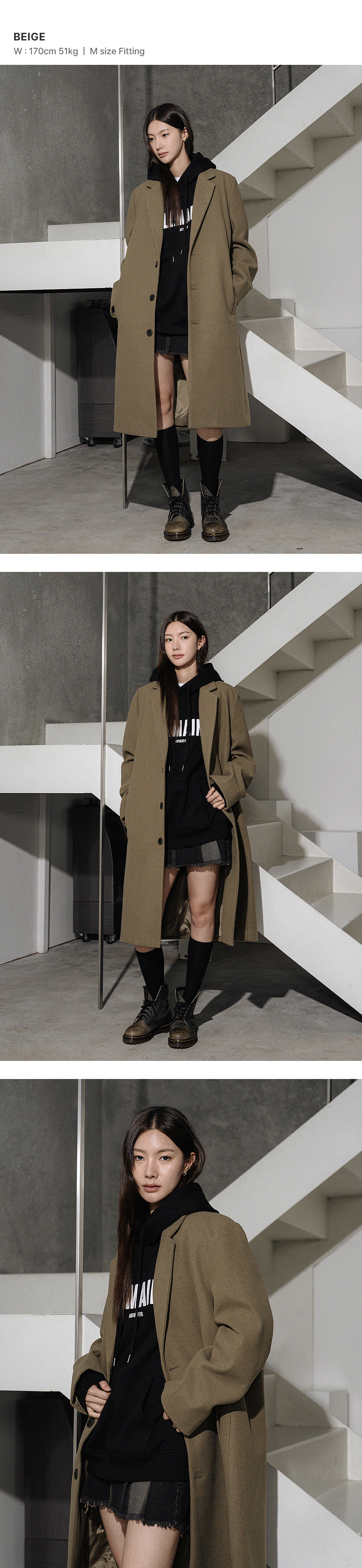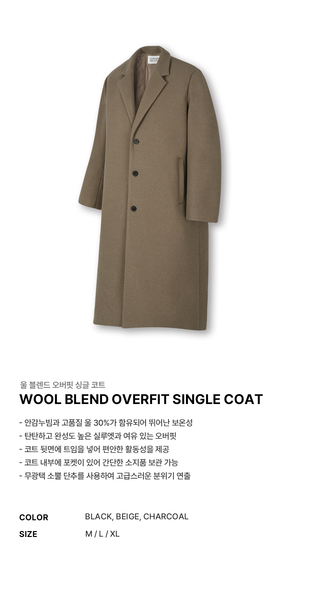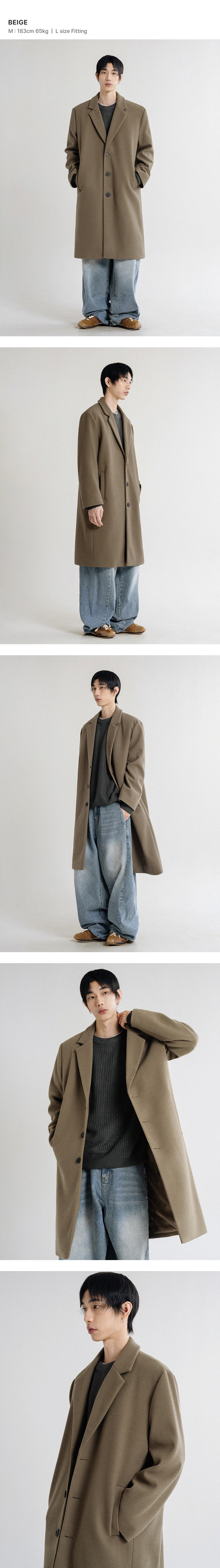 울 블렌드 오버핏 싱글 코트 [베이지]
