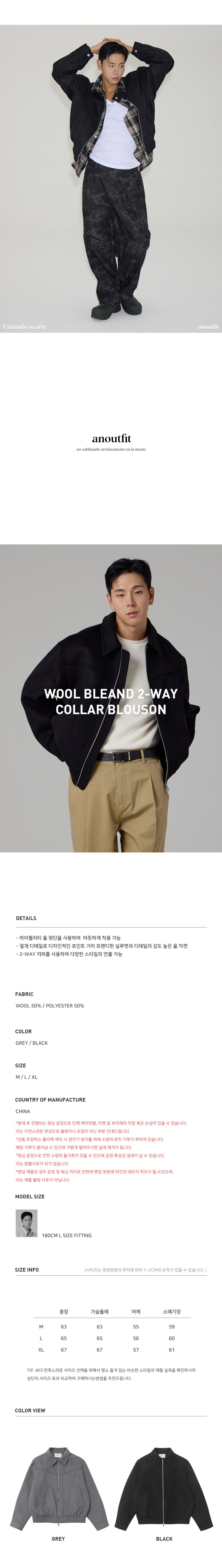 울 블렌드 2-WAY 카라 블루종 블랙