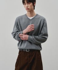 클라우드 터치 브이넥 크롭 니트 [멜란지그레이]