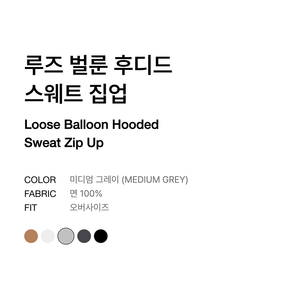 루즈 벌룬 후디드 스웨트 집업 [미디엄 그레이]