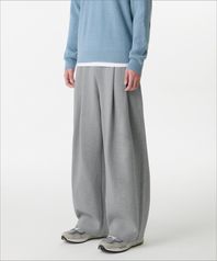 더블 니트 투 턱 와이드 라운지 스웨트 팬츠 [미디엄 그레이]
