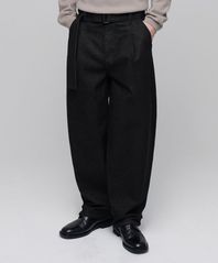 벨티드 세미 벌룬 데님 팬츠 [로우 블랙]