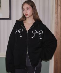 Sketch Ribbon Hood Zip-up [Charcoal]