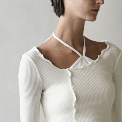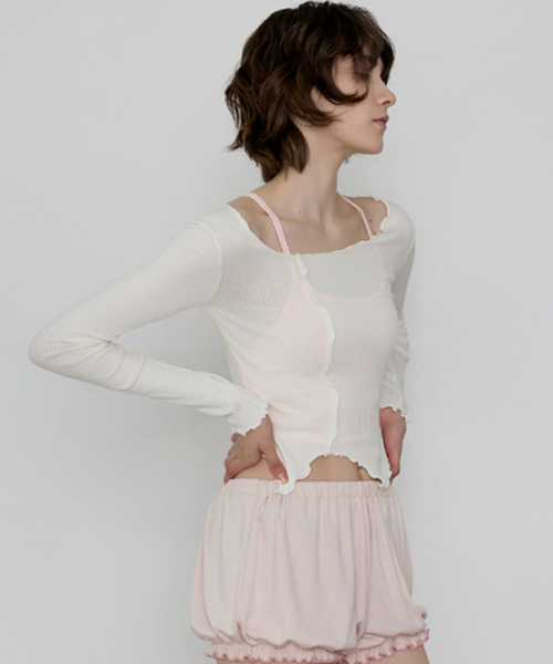 여성 요가복 DEVI-T0112-아이보리 필라테스 웨이븐 프릴 롱슬리브