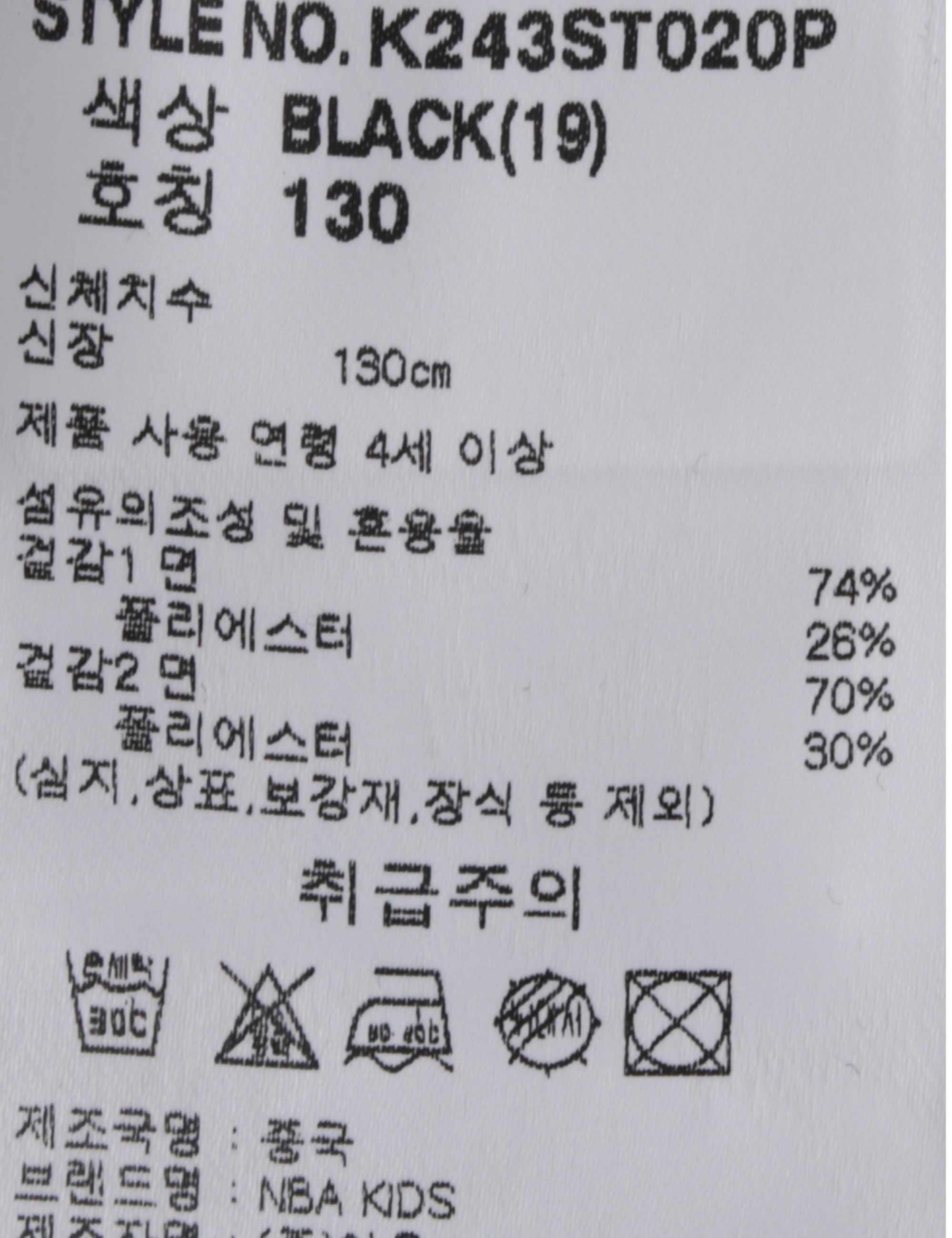 - 130 : 총장(49.5) 어깨너비(34) 가슴단면(41) 소매길이(16)