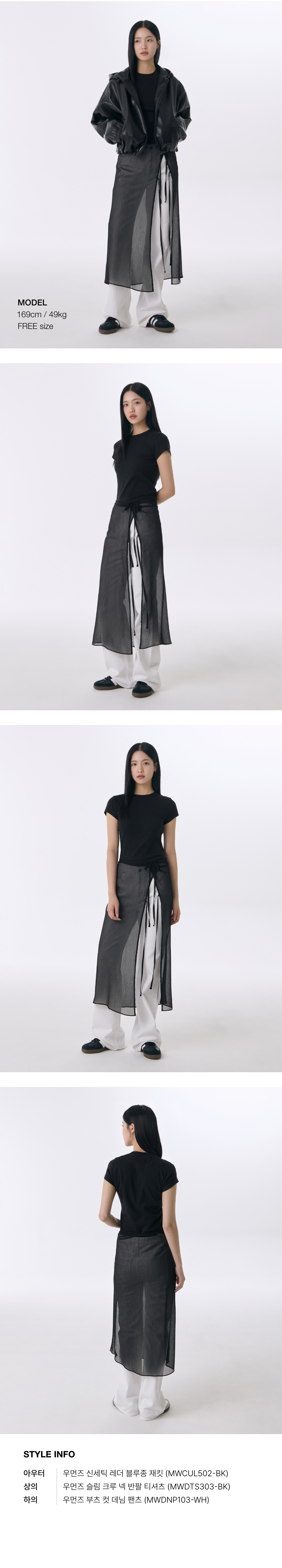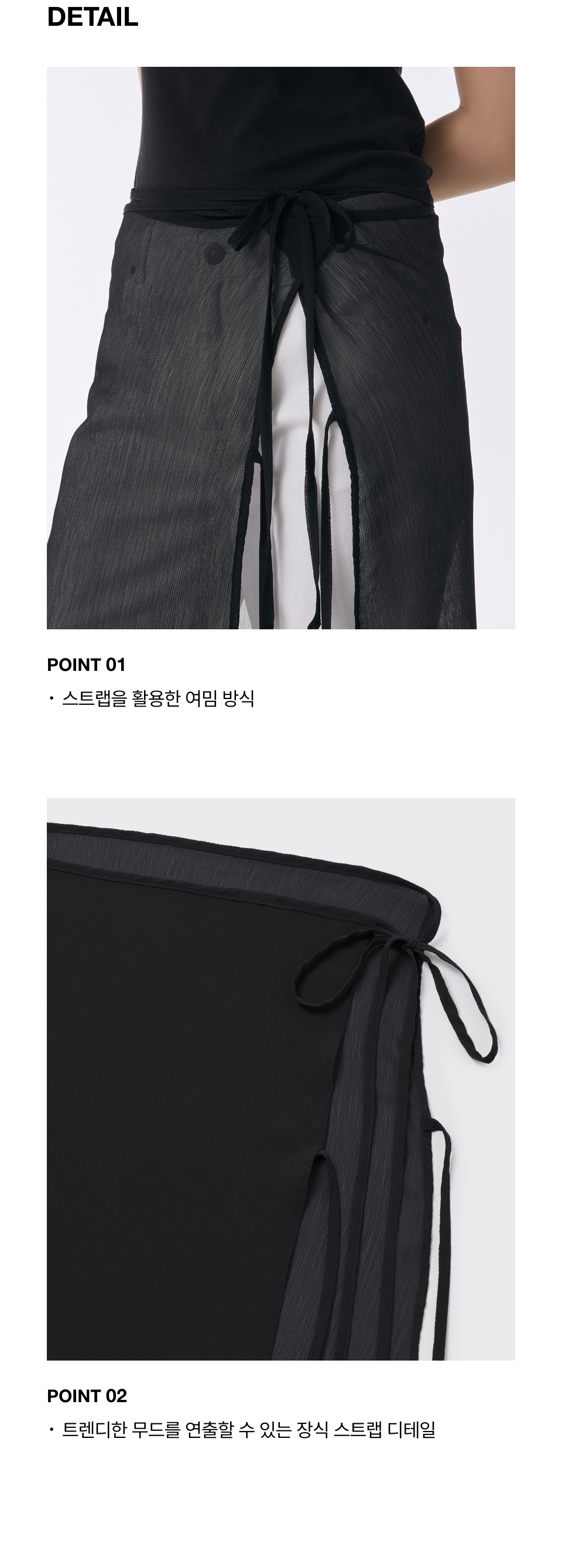 우먼즈 시어 크링클 레이어드 랩 스커트_롱 [블랙]