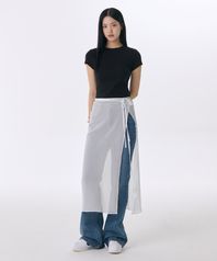 우먼즈 시어 크링클 레이어드 랩 스커트_롱 [화이트]
