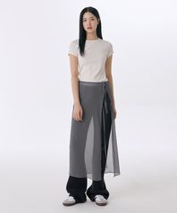 우먼즈 시어 크링클 레이어드 랩 스커트_롱 [그레이]