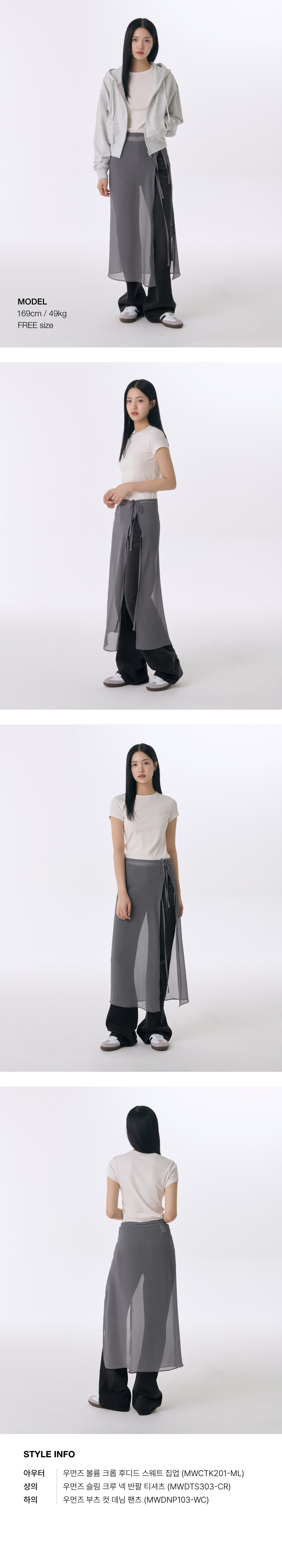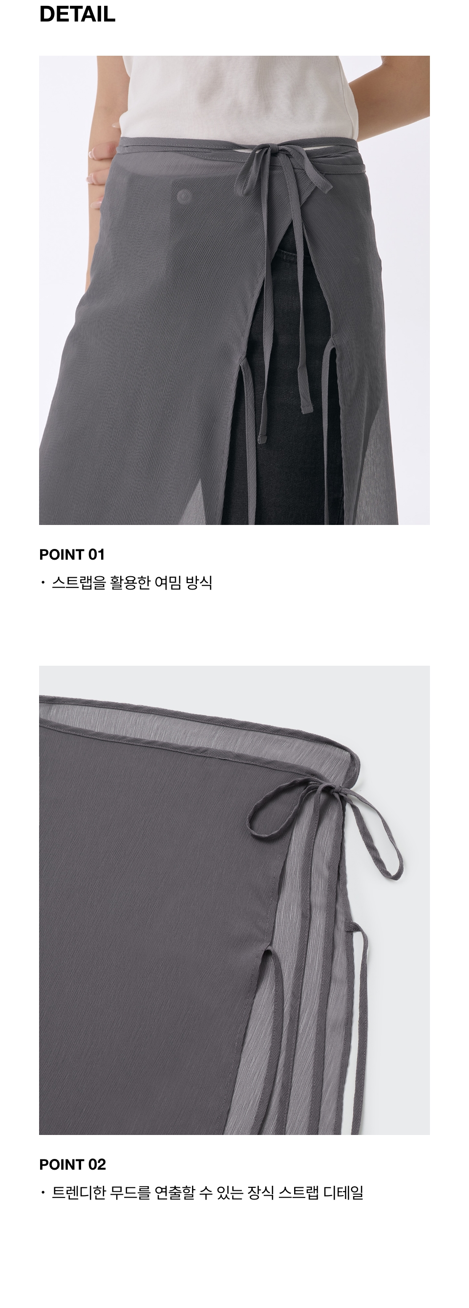 우먼즈 시어 크링클 레이어드 랩 스커트_롱 [그레이]