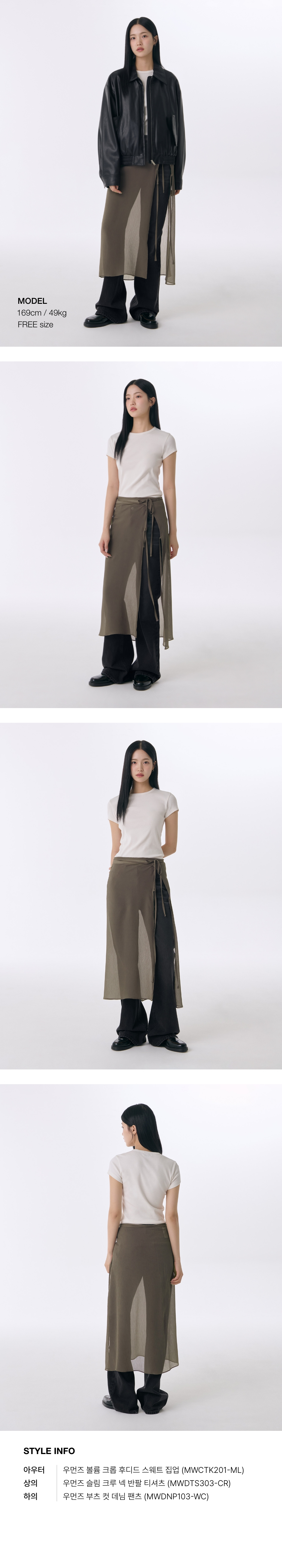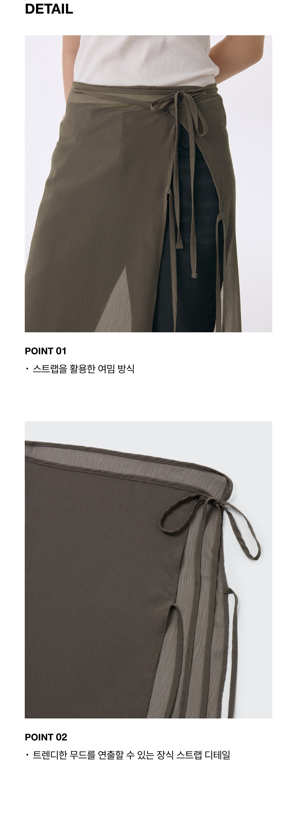 우먼즈 시어 크링클 레이어드 랩 스커트_롱 [카키 브라운]