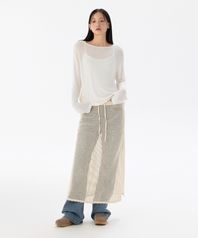우먼즈 시어 크링클 레이어드 랩 스커트_롱 [화이트]
