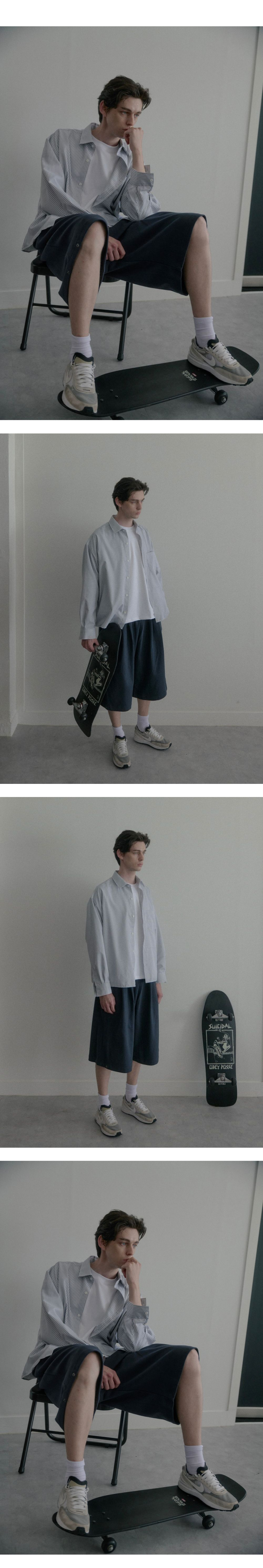 에센셜 옥스포드 크롭 스트라이프 셔츠_3color
