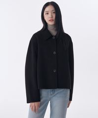 우먼즈 캐시미어 블렌드 핸드메이드 쇼트 맥 코트 [블랙]