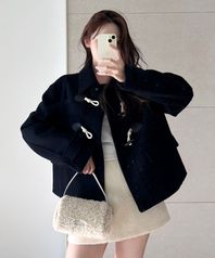 [한소희 PICK] 우먼즈 울 블렌드 쇼트 더플 코트 [네이비]
