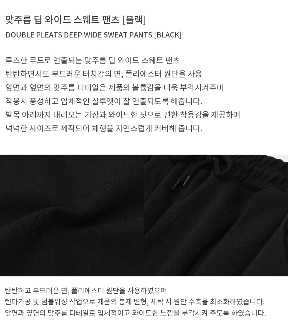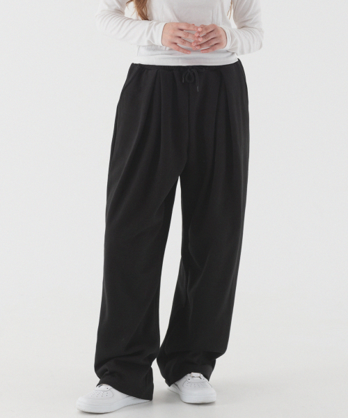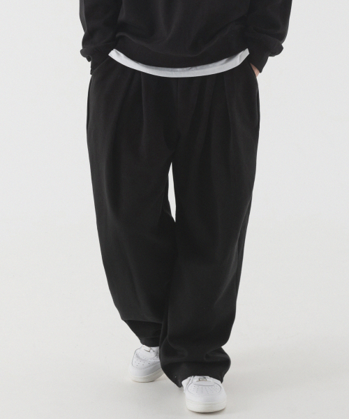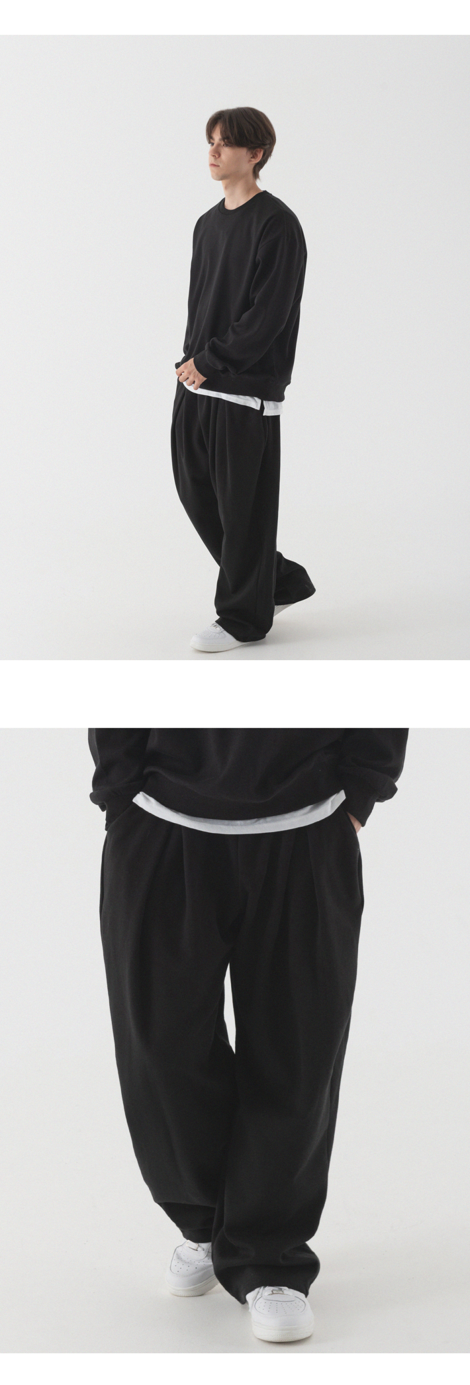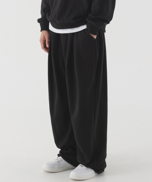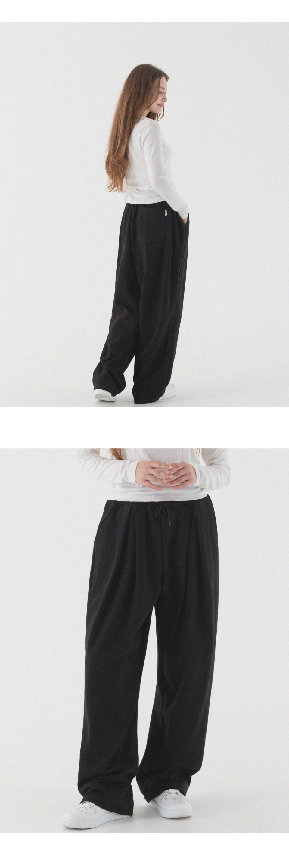 맞주름 딥 와이드 스웨트 팬츠 (블랙)