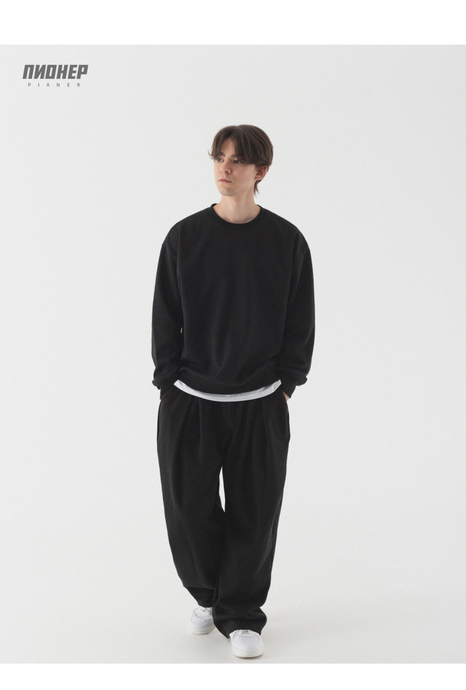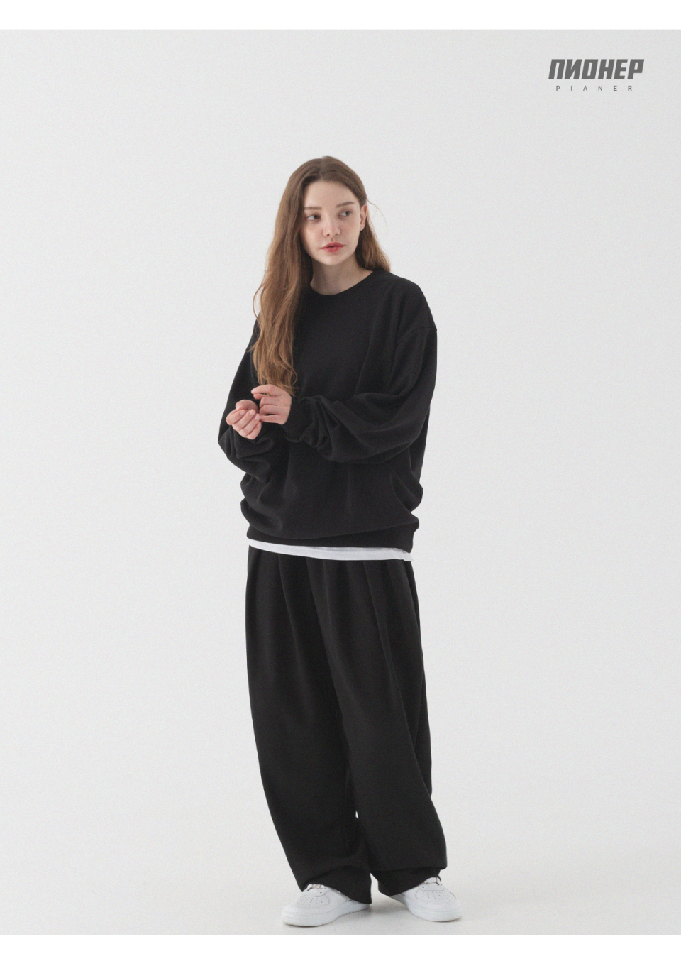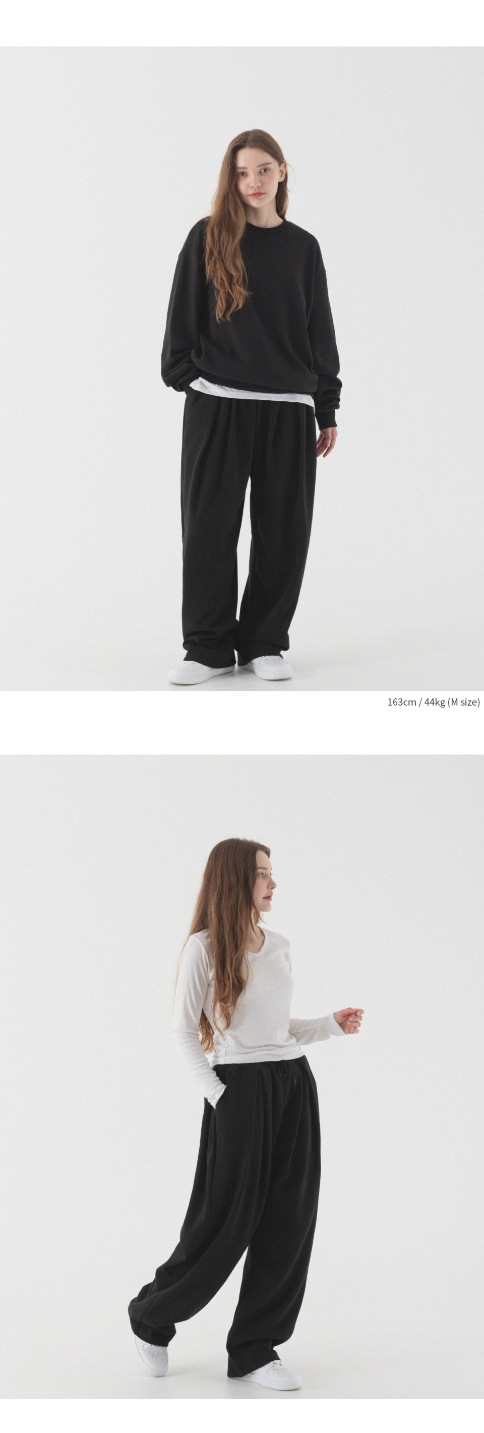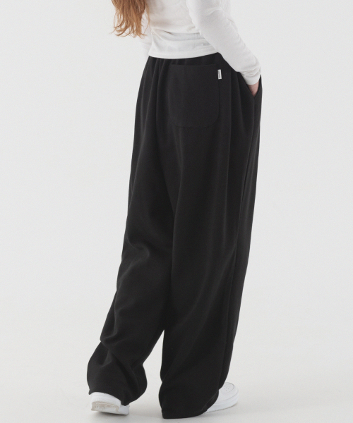 맞주름 딥 와이드 스웨트 팬츠 (블랙)