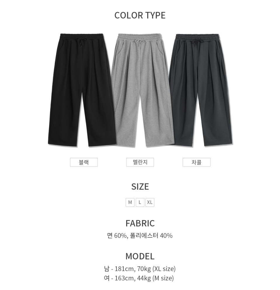 맞주름 딥 와이드 스웨트 팬츠 (차콜)