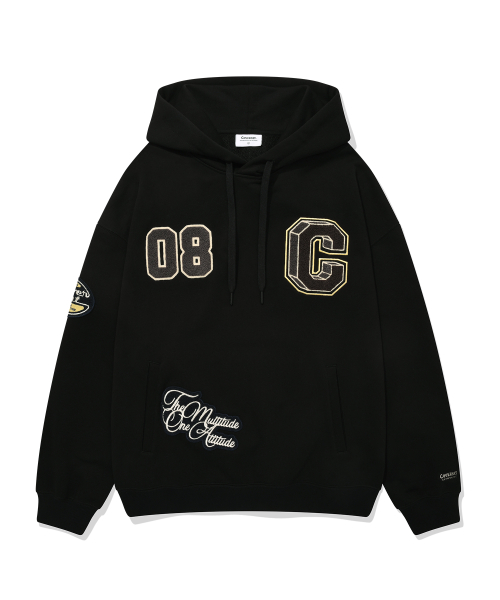 컬리지 C 로고 드롭핏 후디 블랙