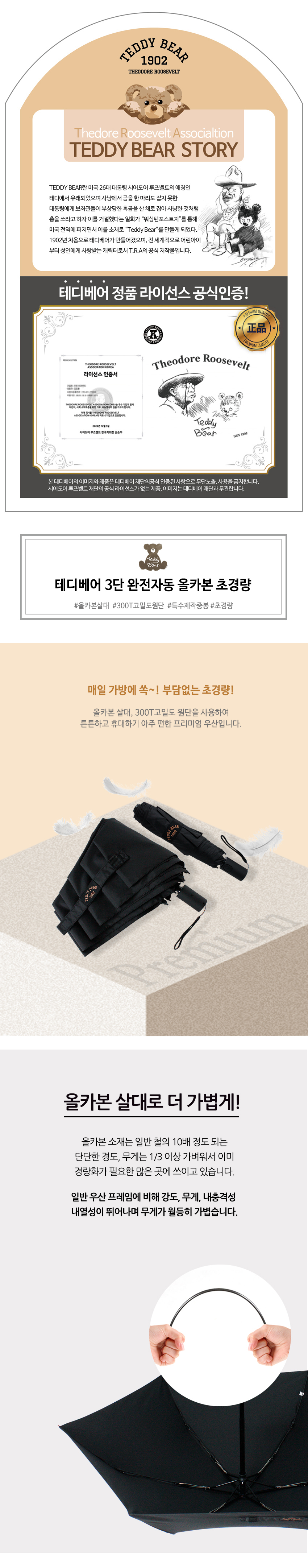 테디베어 53 6K 카본 300T 초고밀도 경량 3단 자동우산 세이프폴딩 블랙