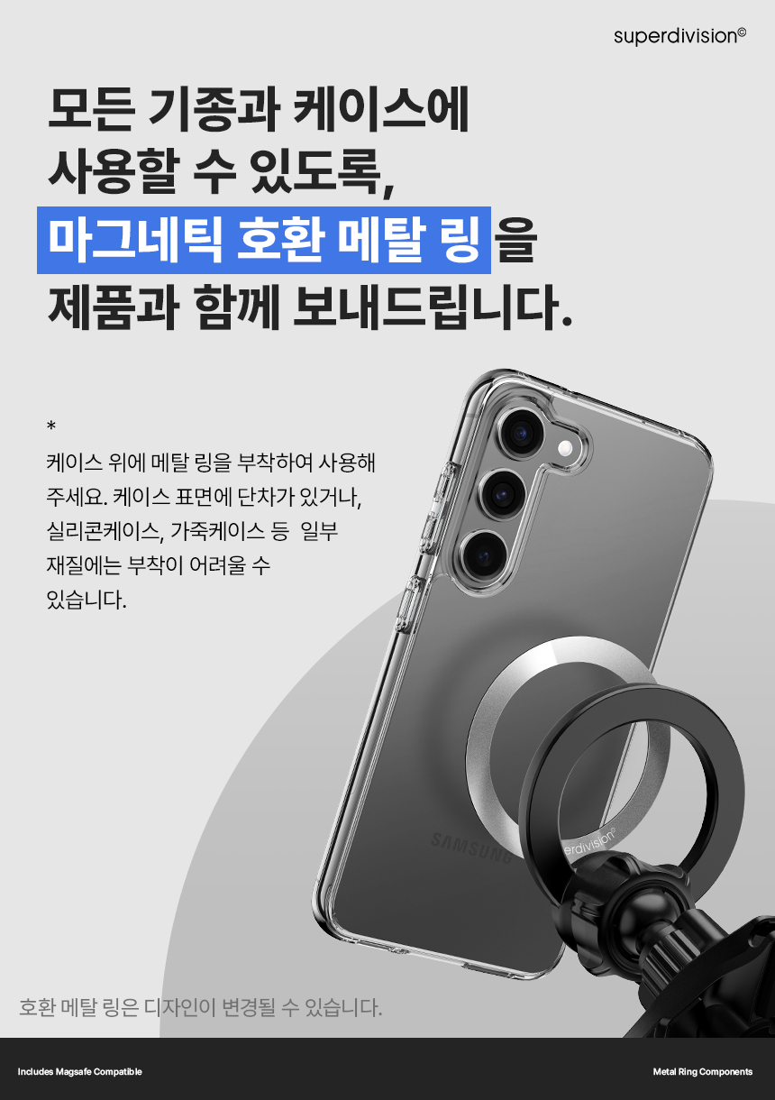 그래비티 맥세이프 송풍구형 자석 거치대 차량용 + 맥세이프 호환 메탈 링 세트