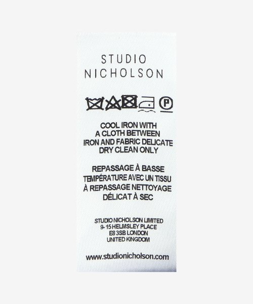 스튜디오 니콜슨(STUDIO NICHOLSON)은 런던의 첼시 예술대학에서 의류학을 전공한 닉 웨이크먼(Nick Wakeman)이 2010년 론칭한 브랜드입니다. 동양의 문화와 건축물, 인테리어에서 영감을 얻은 구조적인 실루엣과 엄선된 우수한 원단과 소재를 바탕으로 섬세하면서도 일상생활에 꼭 필요한 실용적인 디자인을 선보입니다.