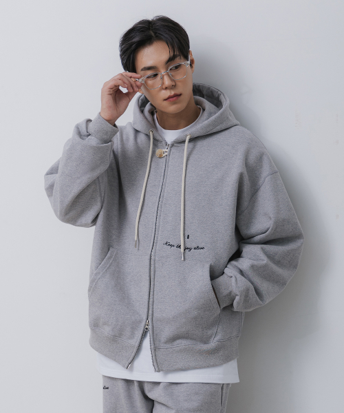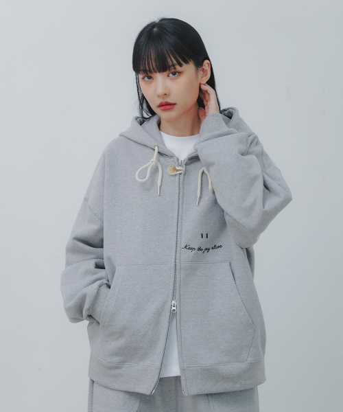 스마일 자수 로고 2WAY 버튼 후드집업 BK7985_그레이