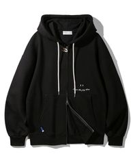 스마일 자수 로고 2WAY 버튼 후드집업 BK7985_블랙