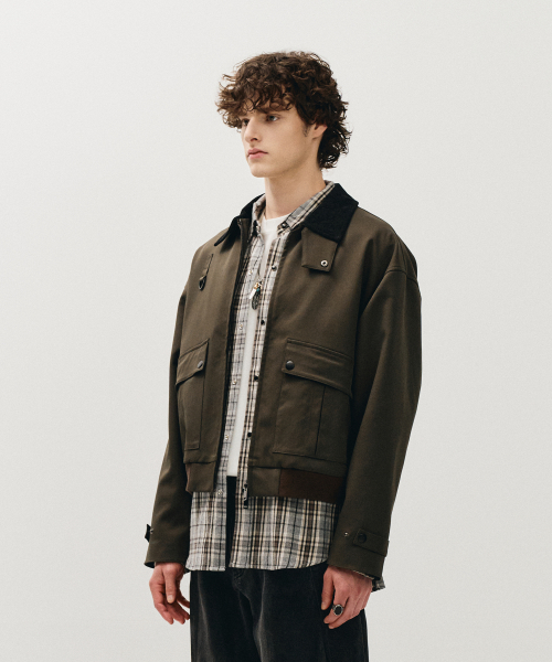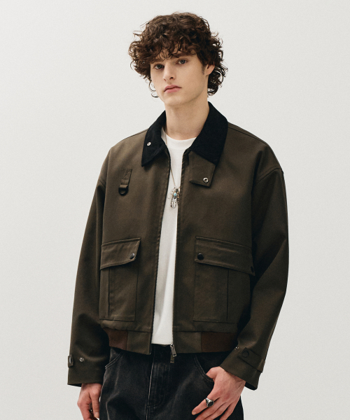 코듀로이 카라 헌팅 블루종 자켓_카키