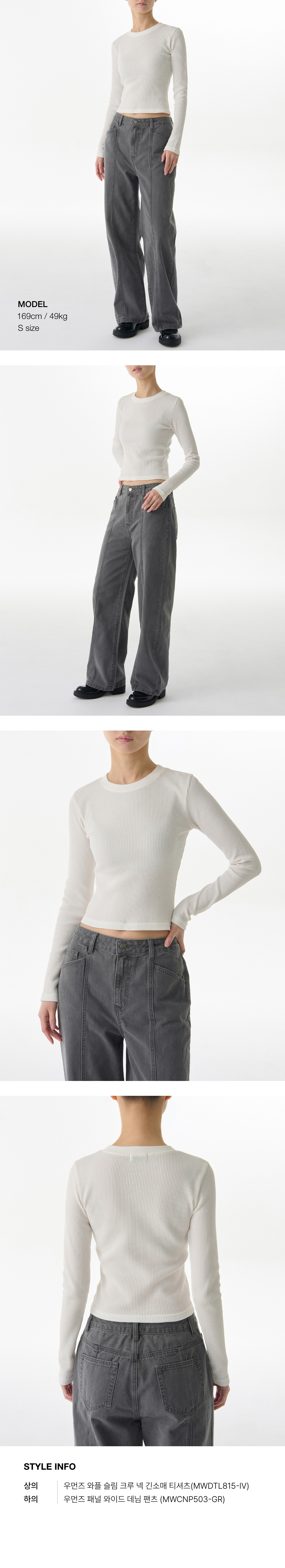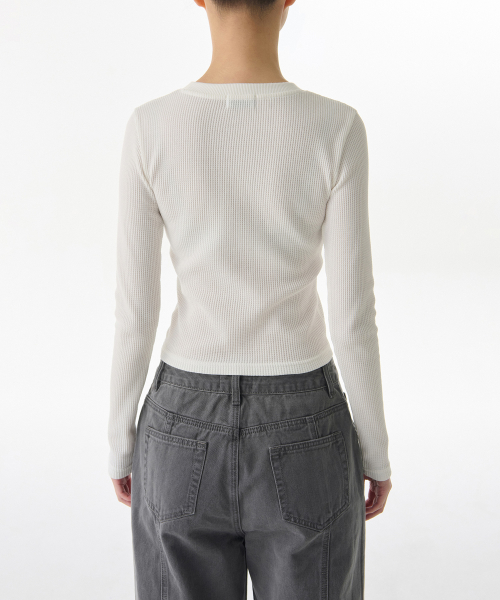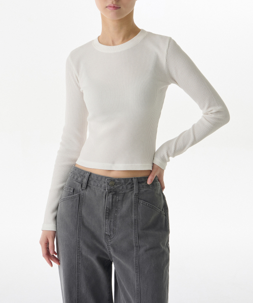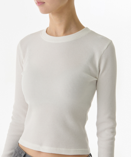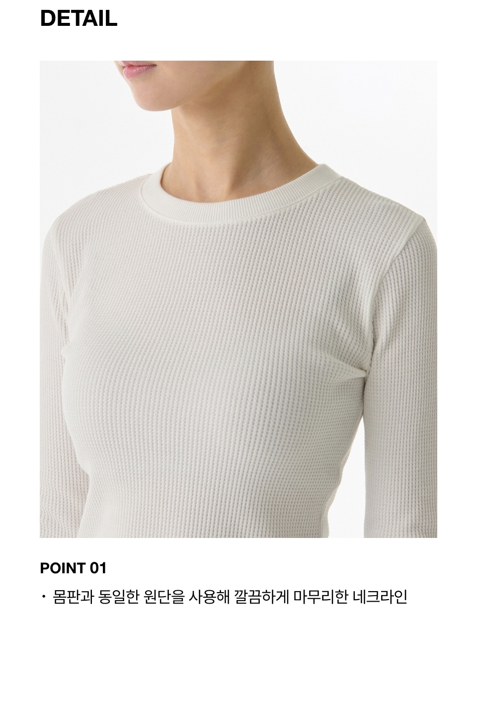 우먼즈 와플 슬림 크루 넥 긴소매 티셔츠 [아이보리]