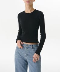 우먼즈 와플 슬림 크루 넥 긴소매 티셔츠 [블랙]
