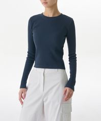 우먼즈 와플 슬림 크루 넥 긴소매 티셔츠 [네이비]