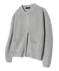 워셔블 라운드넥 하찌 집업 니트 (LIGHT GRAY)