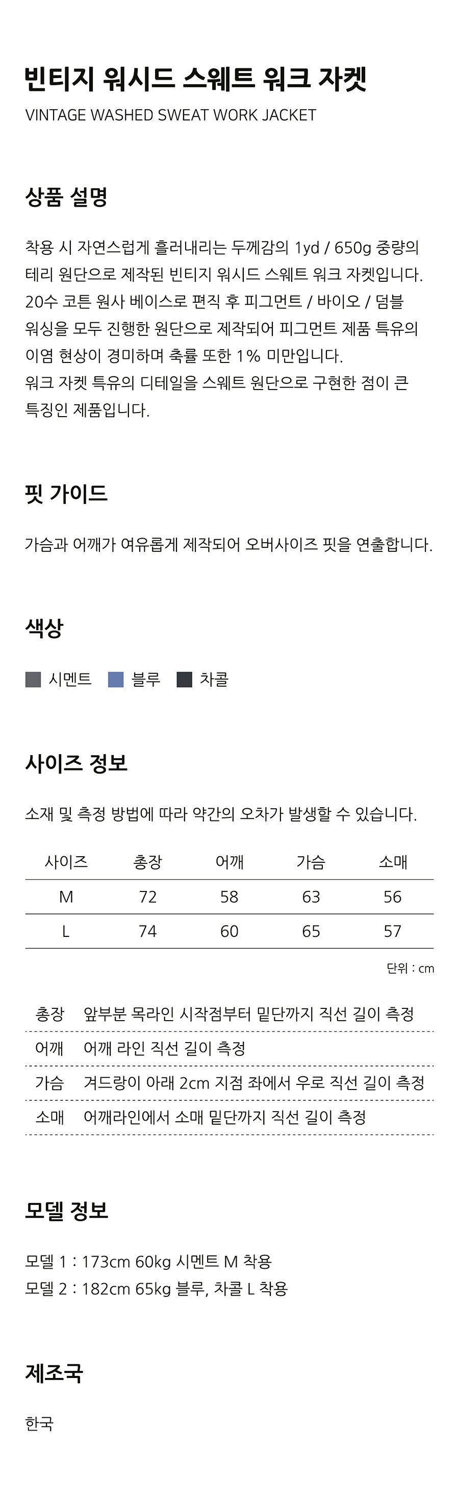 Vintage Washed Sweat Work Jacket [3 Colors]
