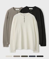[2PACK] 와플 헨리넥 롱 슬리브 티셔츠