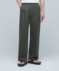 코튼 린넨 원 턱 와이드 팬츠 [카키]