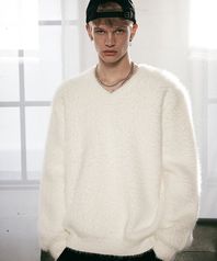 Dirty Spray V-Neck Twisted Knitwear_Charcoal