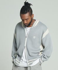 TNR 바시티 자수 니트집업 그레이