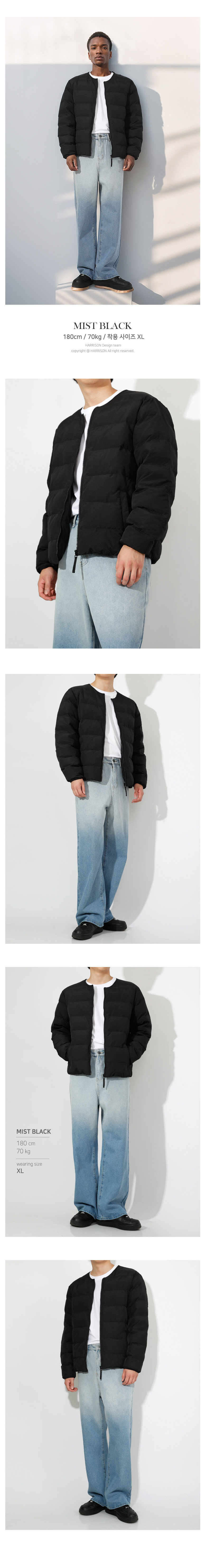 남녀공용 아칼루 라운드넥 경량 패딩점퍼 HA-1001 RIS1001 미스트블랙
