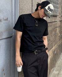 460G 크롭 컷 헤비 피그먼트 티셔츠-워시드 블랙-