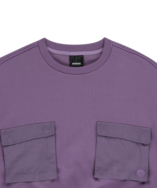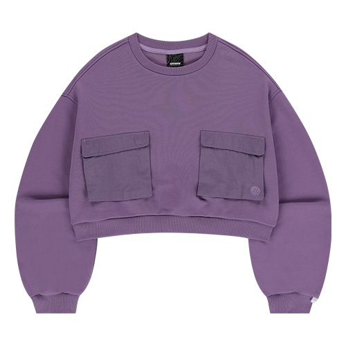 더블포켓 크롭 맨투맨-다크퍼플