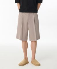 와이드 버뮤다 히든 밴딩 하프 슬랙스 [라이트 베이지]