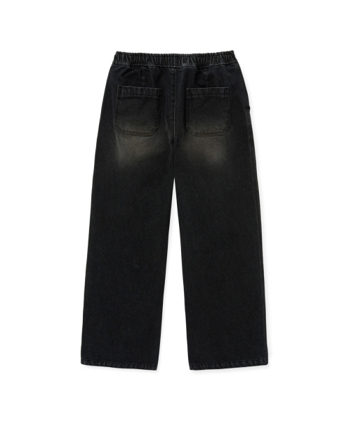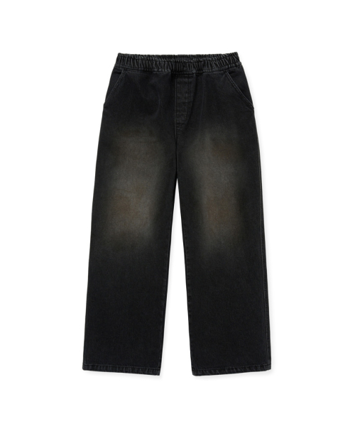[M~4XL] 워싱 데님 밴딩 팬츠_블랙
