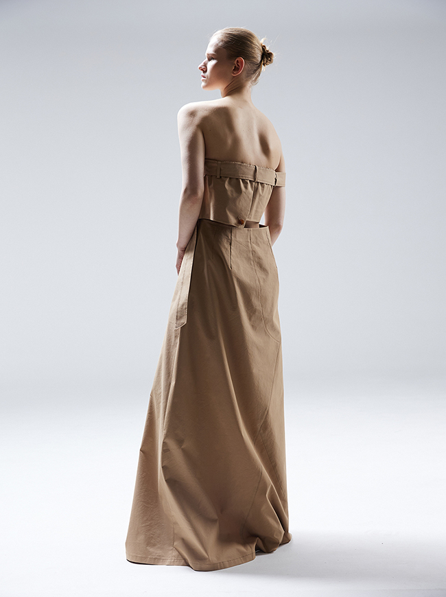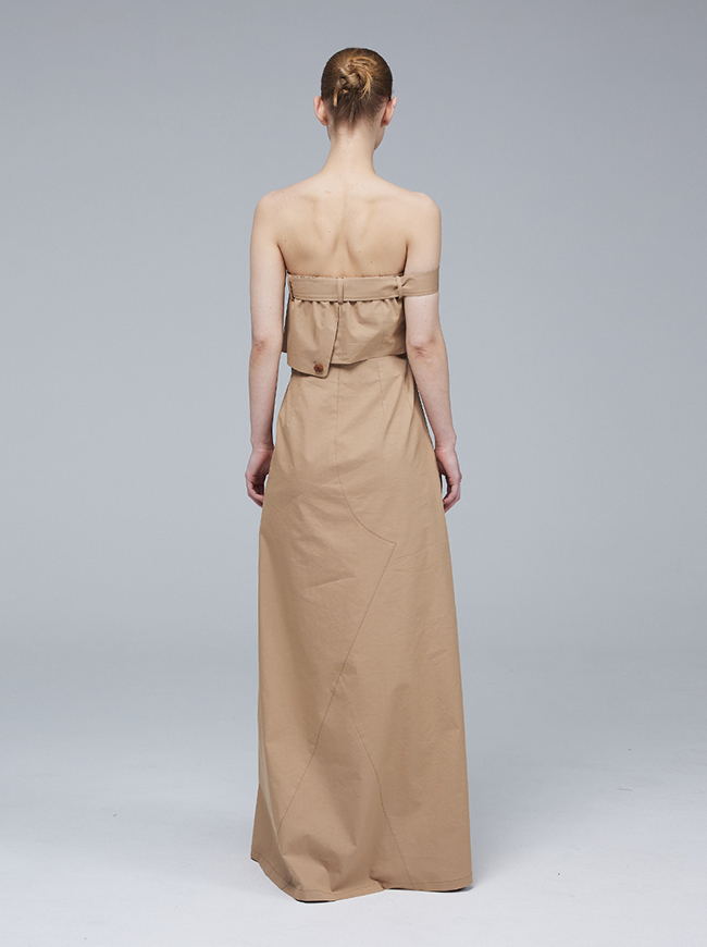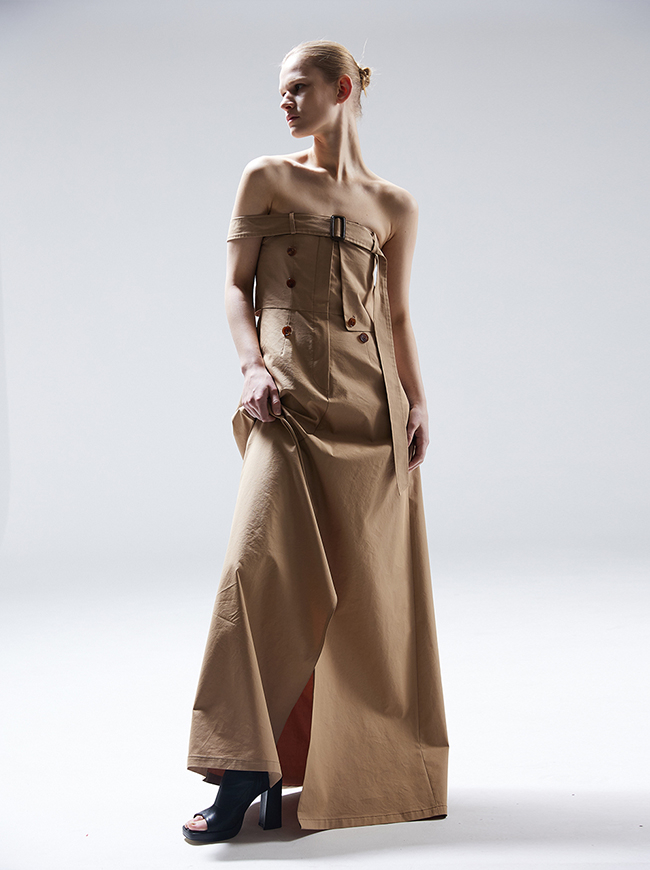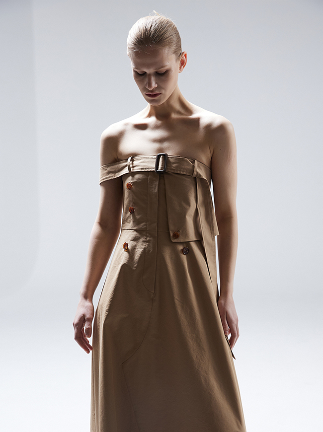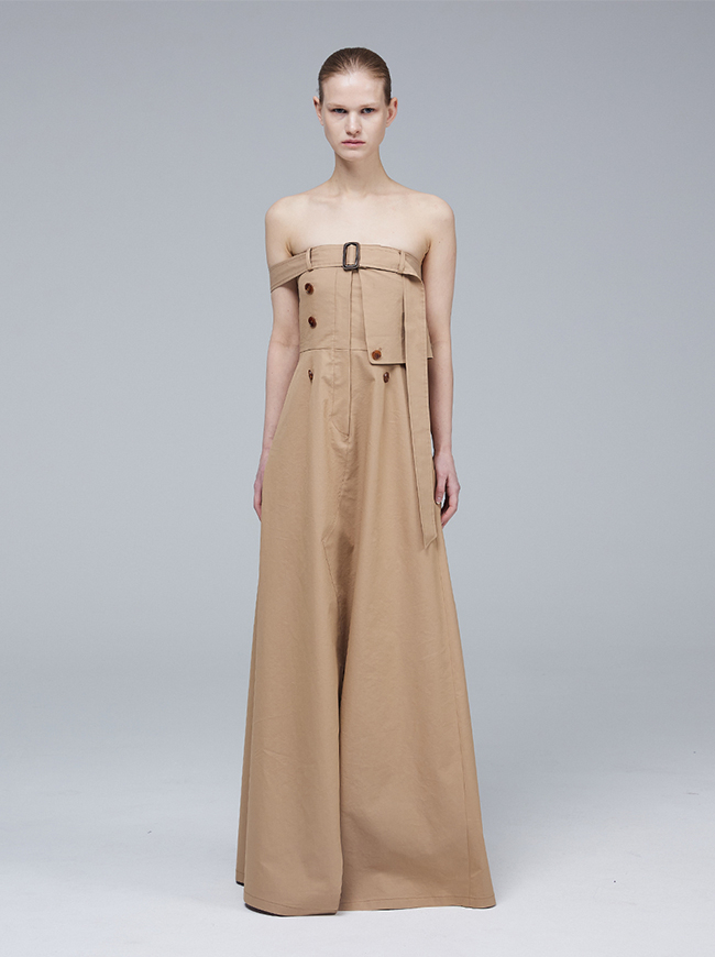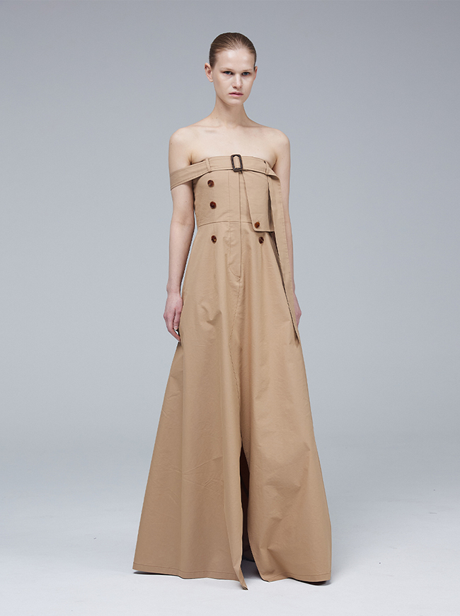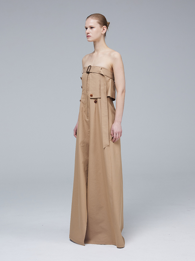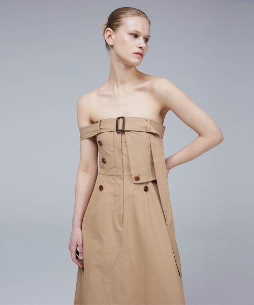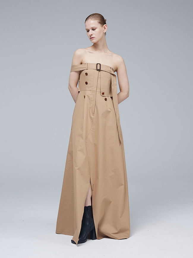 - 팬츠 디테일과 트렌치 코트의 요소를 그대로 접목시킨 미니멀 드레스