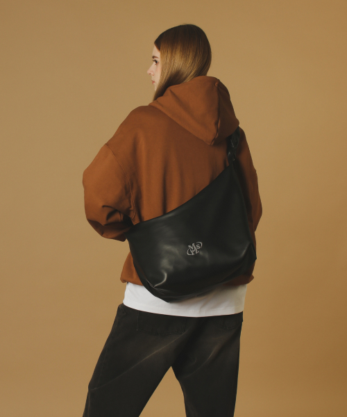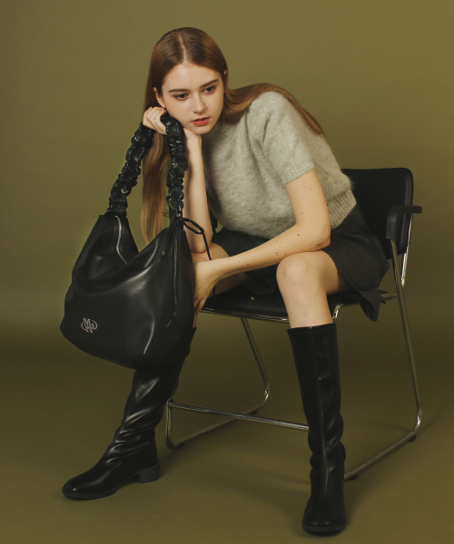 Leather 2way shirring hobo bag _ Black
