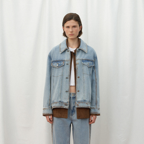 오버사이즈 염료를 라인 포인트로 입힌 데님 자켓입니다.