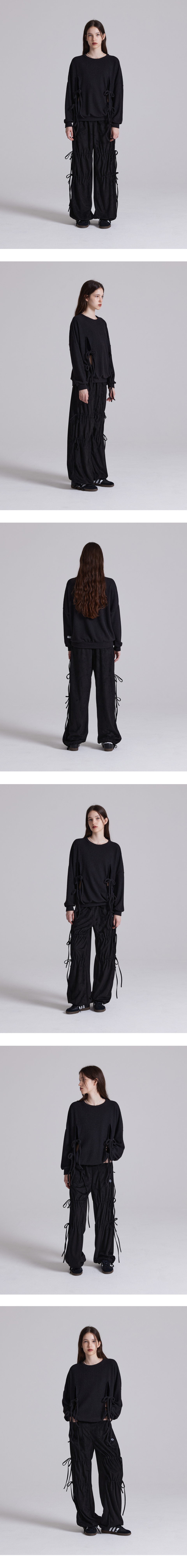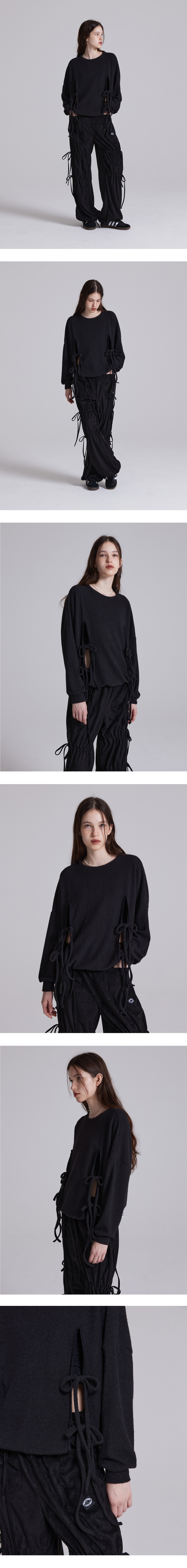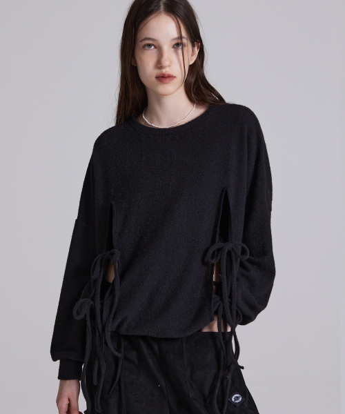 루즈핏 리본 맨투맨. 앞부분 트임에 리본을 가미.