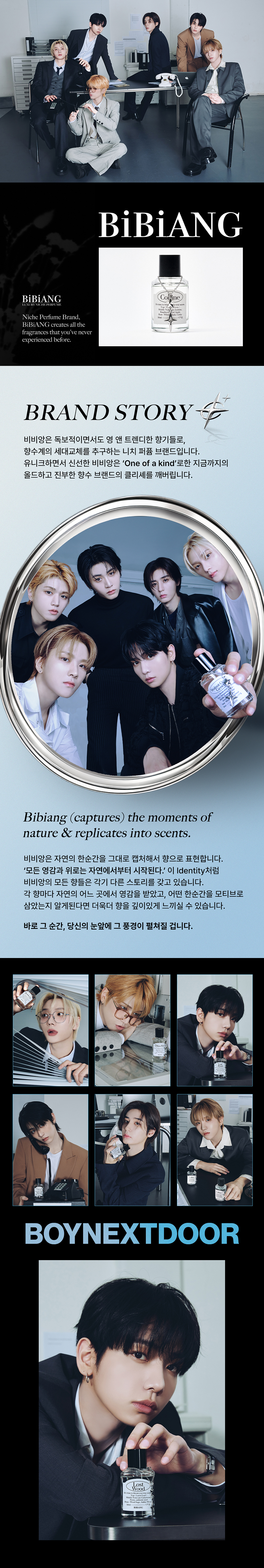 비비앙(BIBIANG)은 독보적이면서도 유니크하고, 영 앤 트렌디한 향기들로 향수계의 세대 교체를 추구하는 센세이셔널한 니치 퍼퓸 브랜드입니다. 자연의 한순간을 그대로 캡처해서 향으로 표현하며, 각 향마다 독특한 스토리텔링을 담고 있습니다.