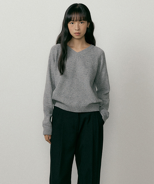 램스울 원사를 사용한 미니멀한 디자인의 래글런 V-NECK 니트입니다. 특유의 부드러우면서 가벼운 텍스처로 부해 보임 없이 편안하게 착용 가능합니다. 넥 라인과 암홀 라인에 헤라시 디테일로 포인트를 주었습니다. 넥, 소매, 밑단 라인 부분은 탄탄하면서 텐션 좋은 리브 형식의 편직으로 변형을 주었습니다.