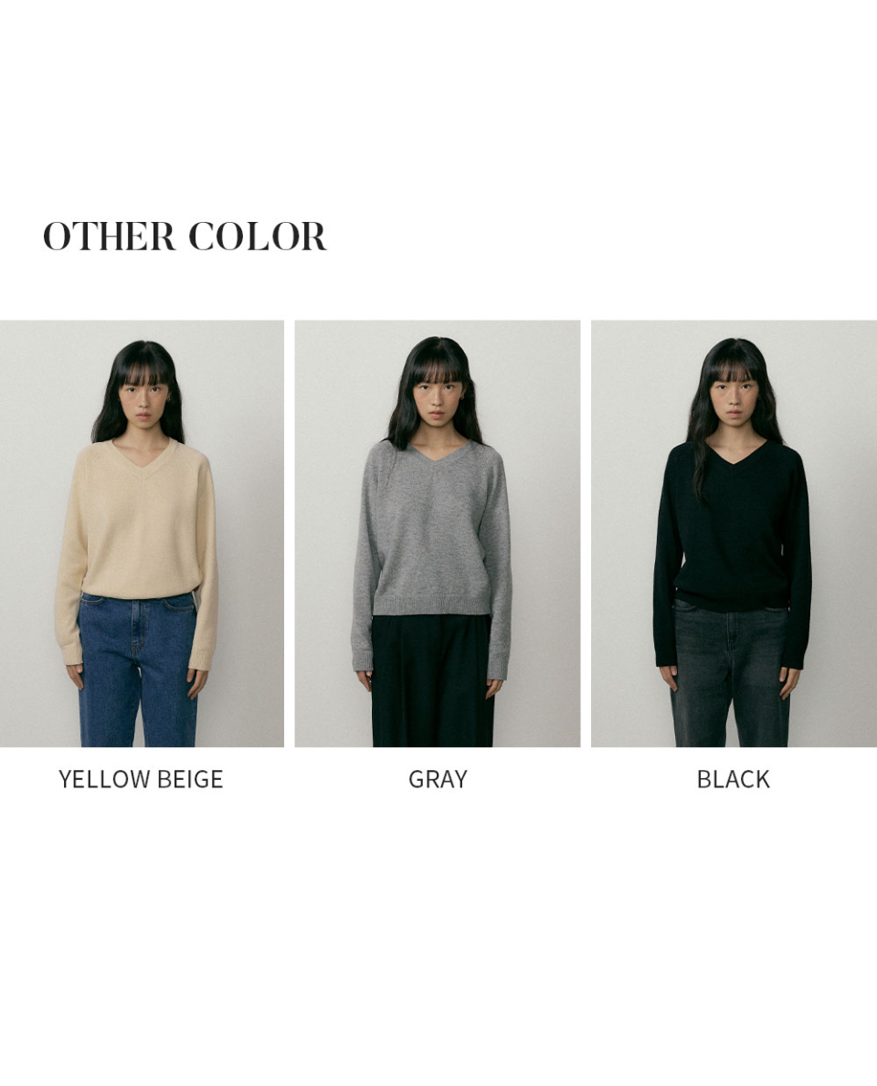 램스울 원사를 사용한 미니멀한 디자인의 래글런 V-NECK 니트입니다. 특유의 부드러우면서 가벼운 텍스처로 부해 보임 없이 편안하게 착용 가능합니다. 넥 라인과 암홀 라인에 헤라시 디테일로 포인트를 주었습니다. 넥, 소매, 밑단 라인 부분은 탄탄하면서 텐션 좋은 리브 형식의 편직으로 변형을 주었습니다.