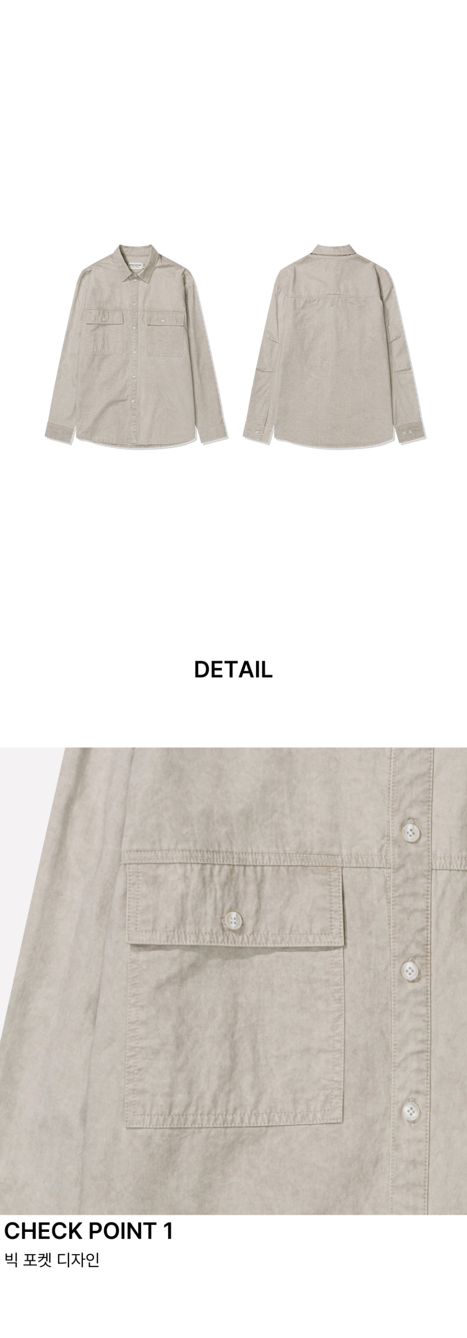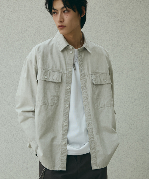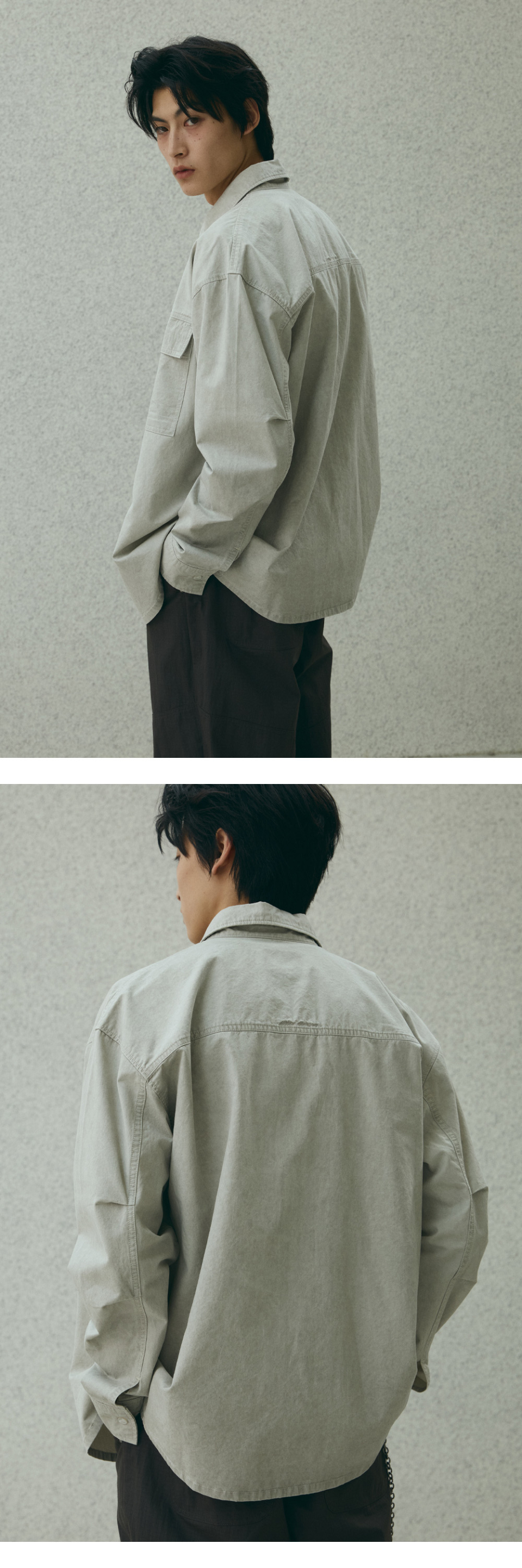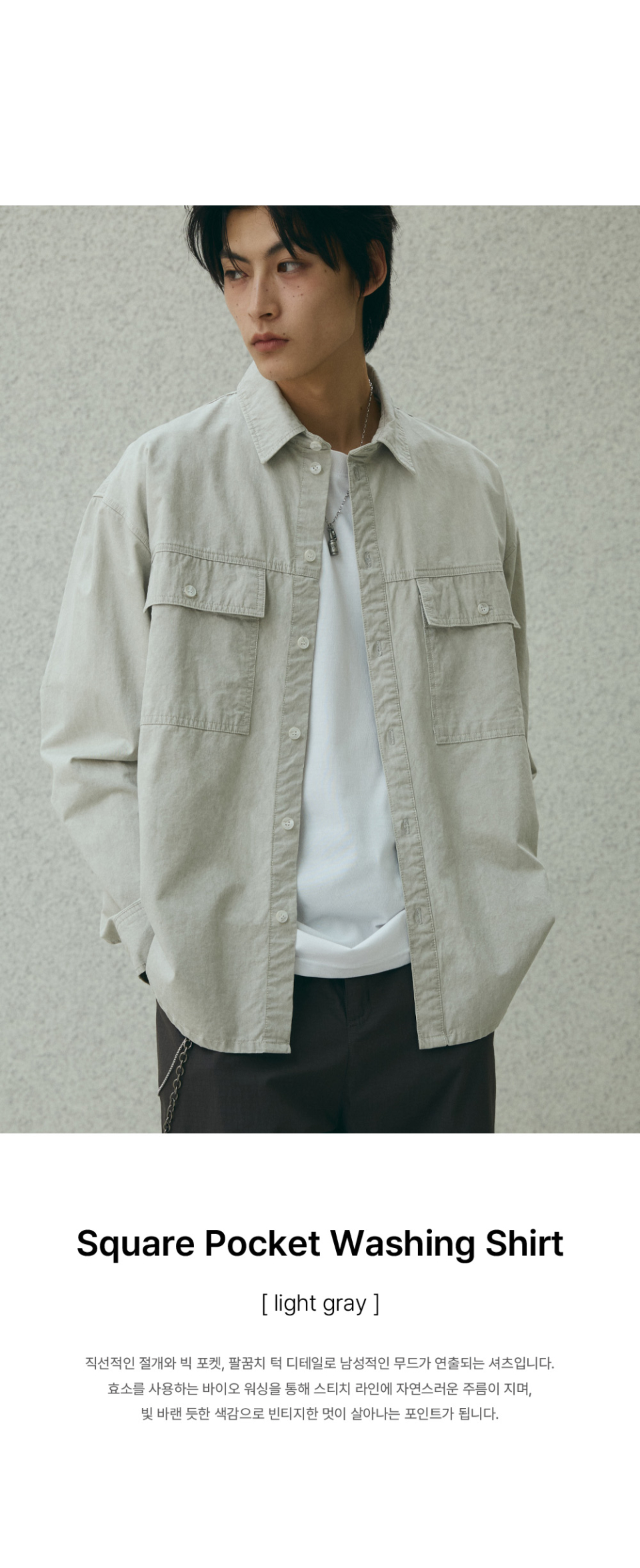 스퀘어 포켓 워싱 셔츠 [라이트그레이]